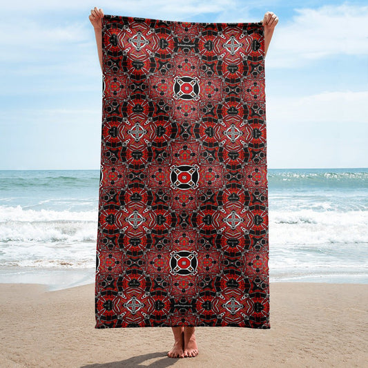 Badetuch • Zirkus – Kaleidoskop, rot, schwarz, weiß