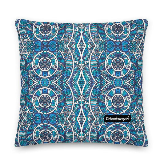 Kissen • Kreiswelle – Variation 1, blau, weiß