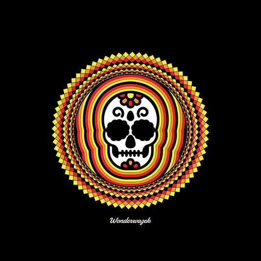 Einkaufstasche • Tribal Totenkopf – gelb, orange, rot, schwarz