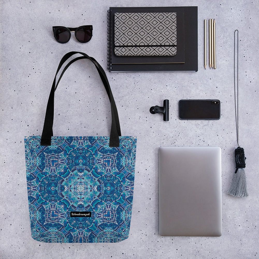 Einkaufstasche • Wassergeister – Kaleidoskop, blau, weiß