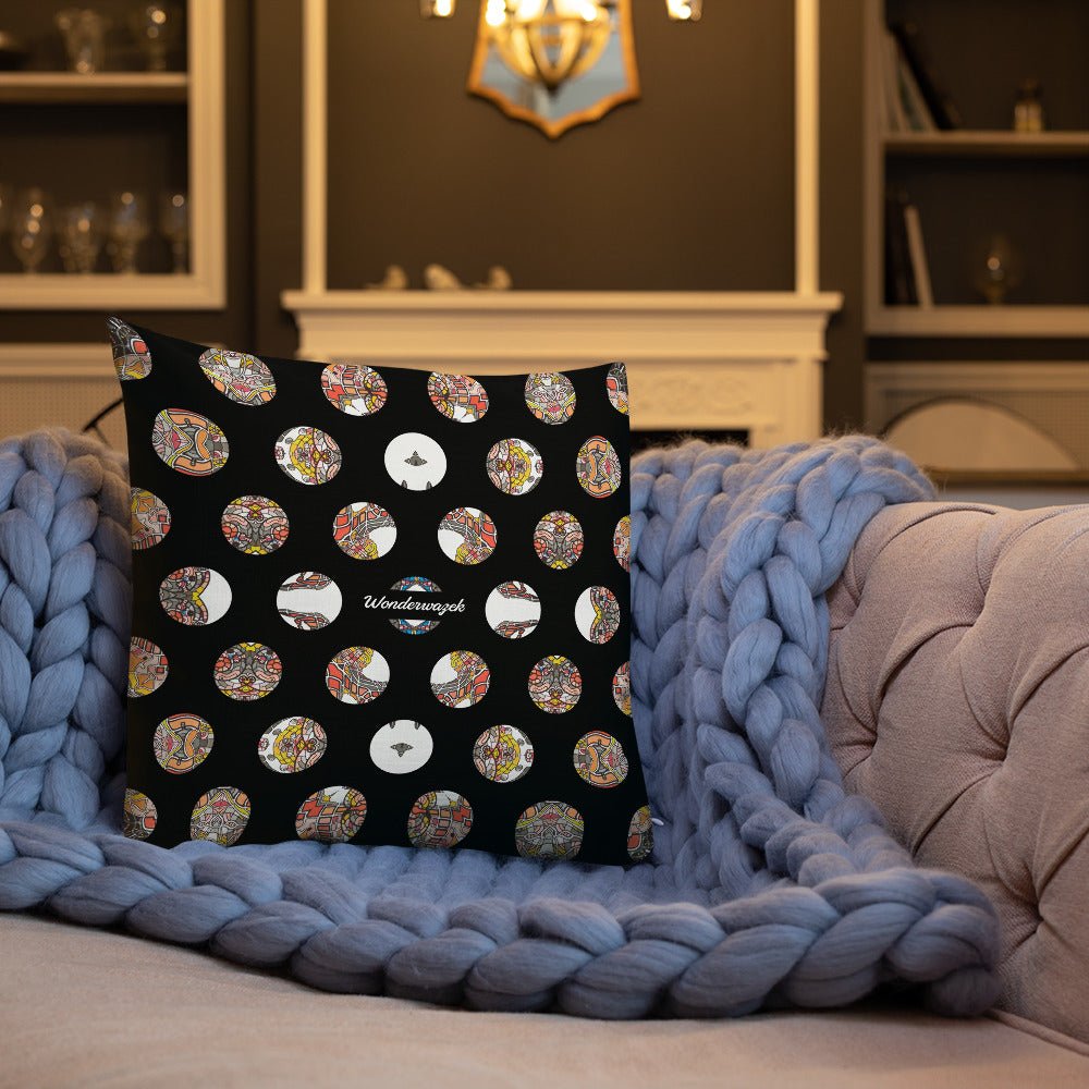 Kissen • Kinderspiel – Punkte, grau, orange, schwarz