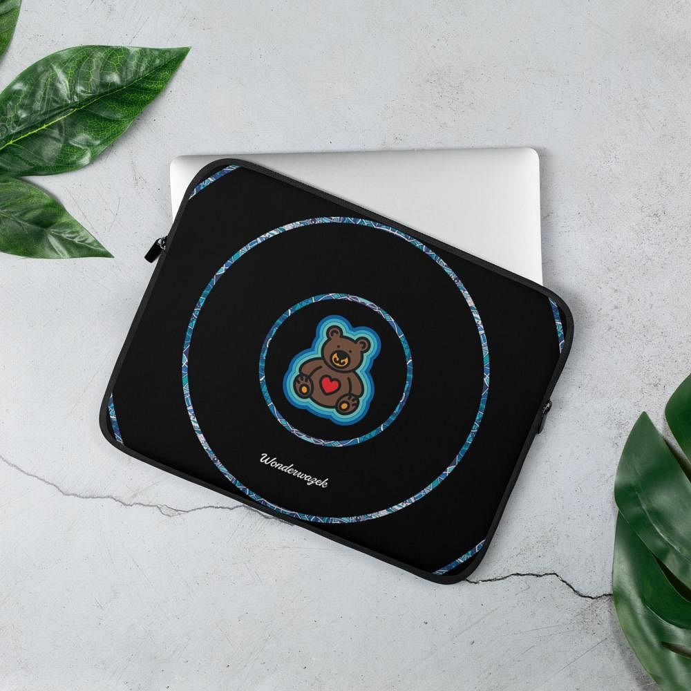 Laptoptasche • dezente Kreise, Teddy mit Herz – blau, schwarz
